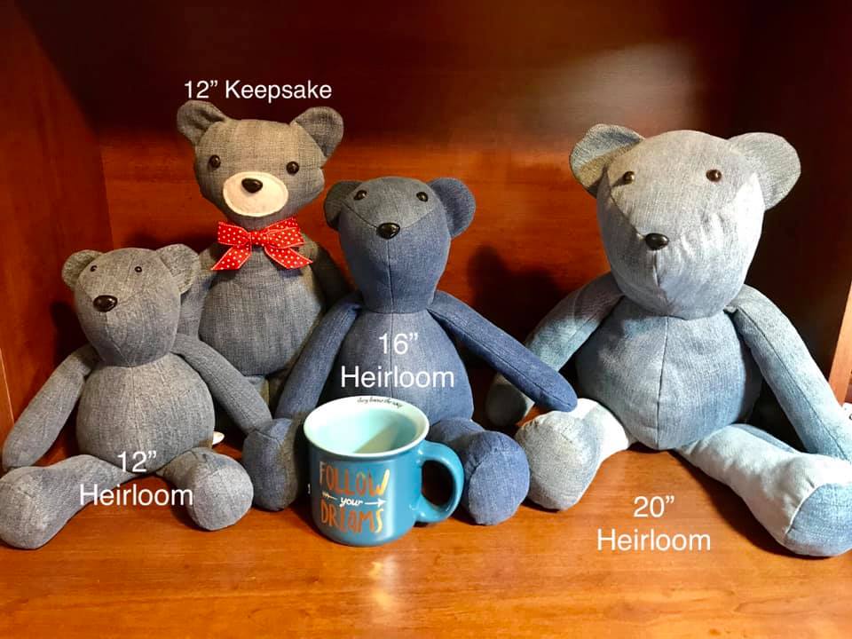 Sew Beary Blessed offers 3 different sizes of Heirloom Bears and 1 size of Keepsake Bear.